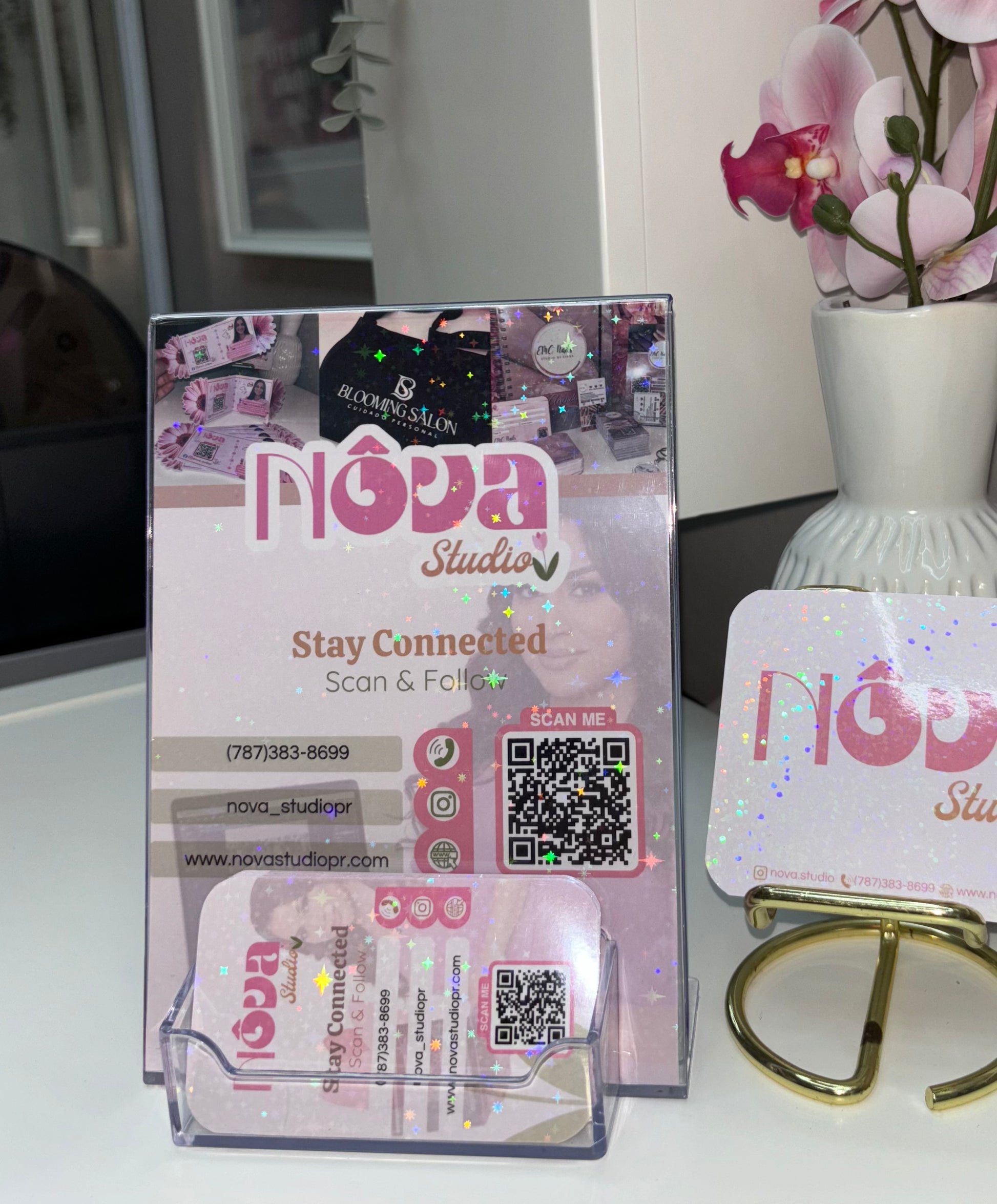 Elegancia, orden y visibilidad para tu marca. Utilizalo como llamativo visual para que vean tu información + como organizador para tarjetas que tus clientes puedan tomar y llevar con ellos.